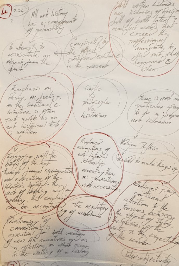 • Employing a specific visual style of writing to foreground the engagement with an artwork at the time of looking