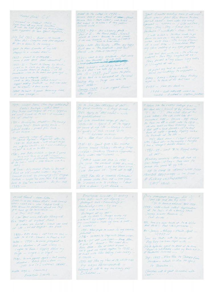 Fig.2. Emin, T (1995) C.V. (ink on paper) At: https://www.tate.org.uk/art/artworks/emin-tracey-emin-c-v-t07632 (Accessed 23/09/24)