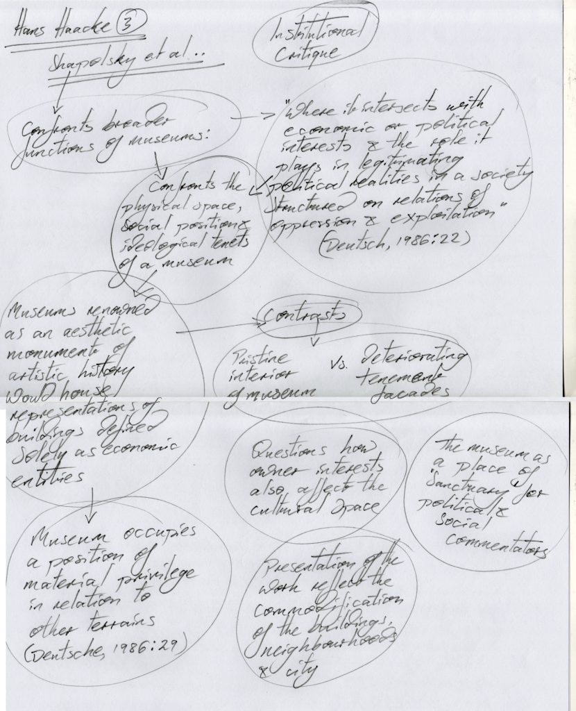 • Haacke’s work reflects on the permanently incomplete meaning of art works: the historical, social (et al) context of a work’s viewing will always shape critical perceptions