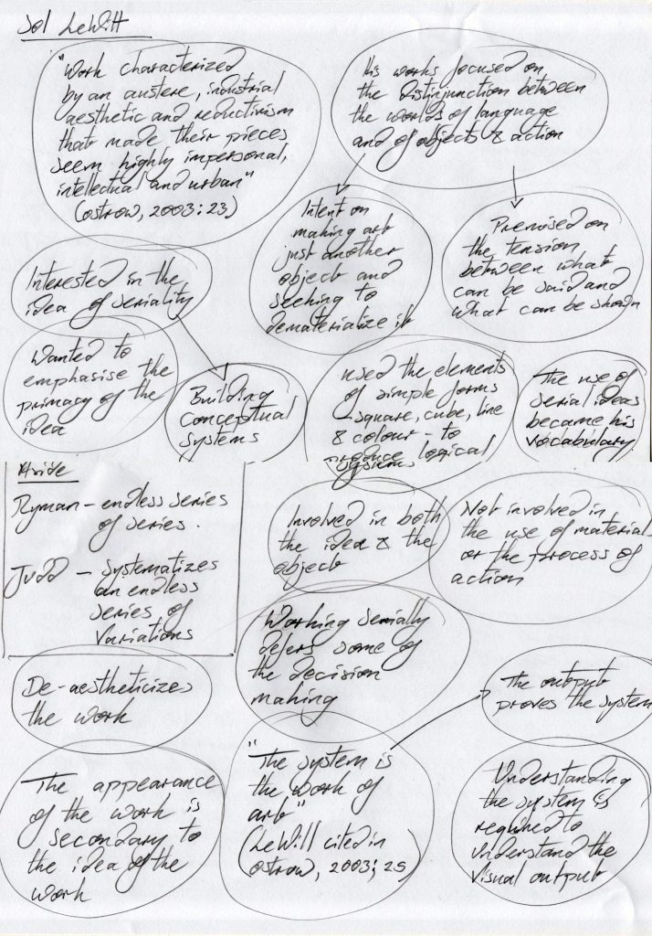 • All creative processes are systems of a sort. Le Witt formalises and documents his process as an artistic object in it’s own right