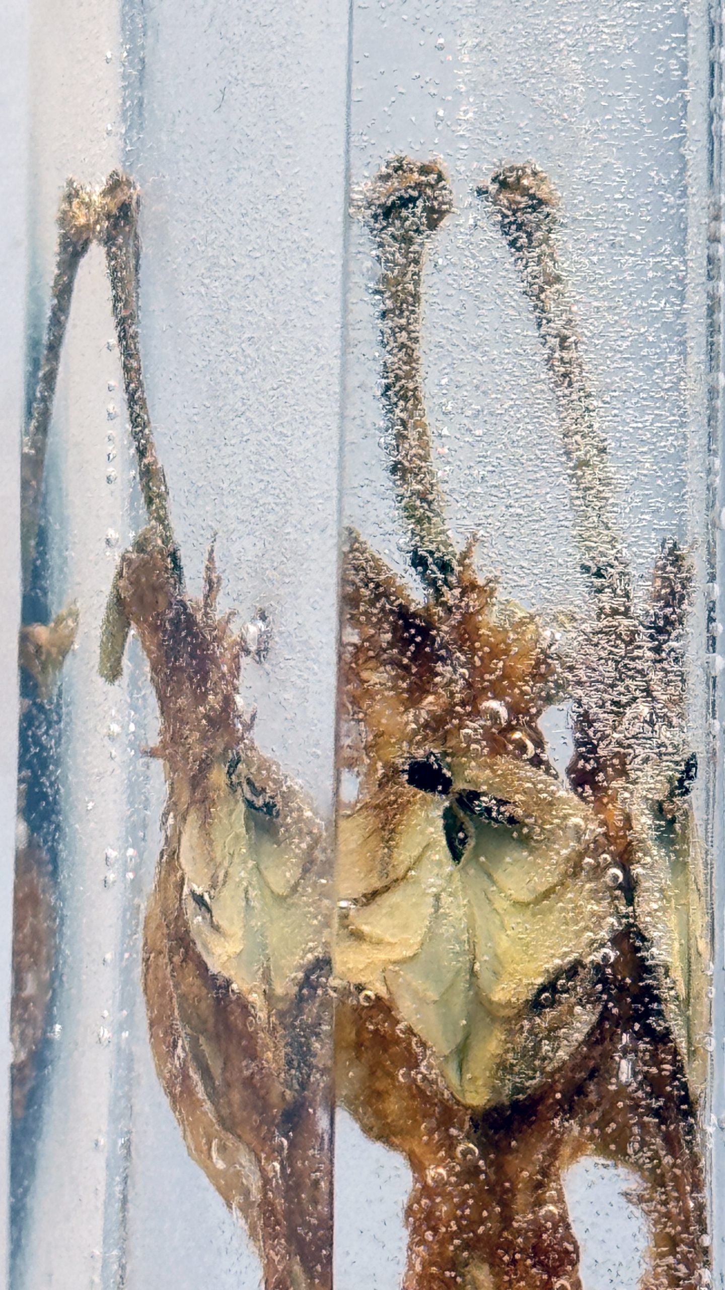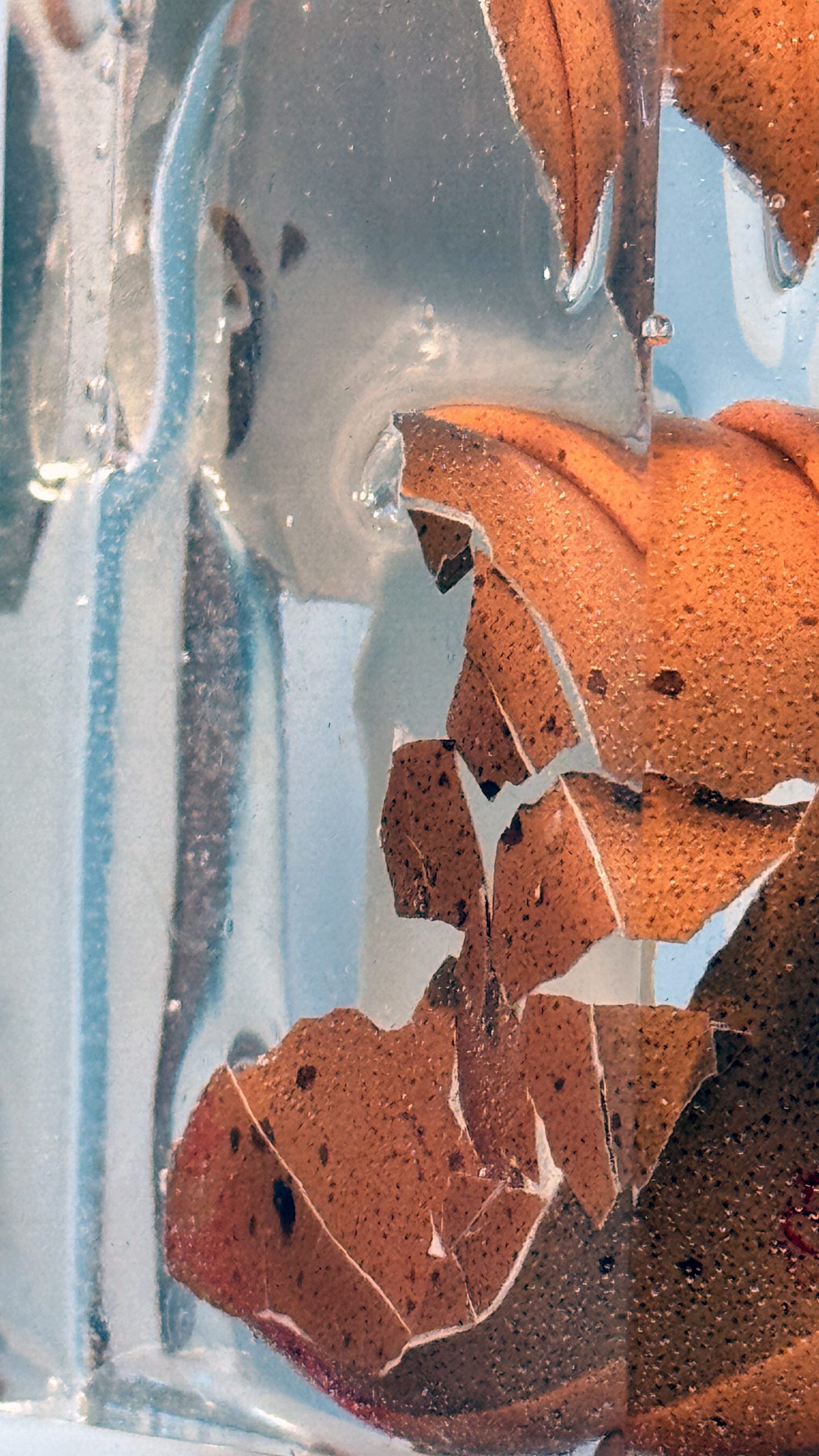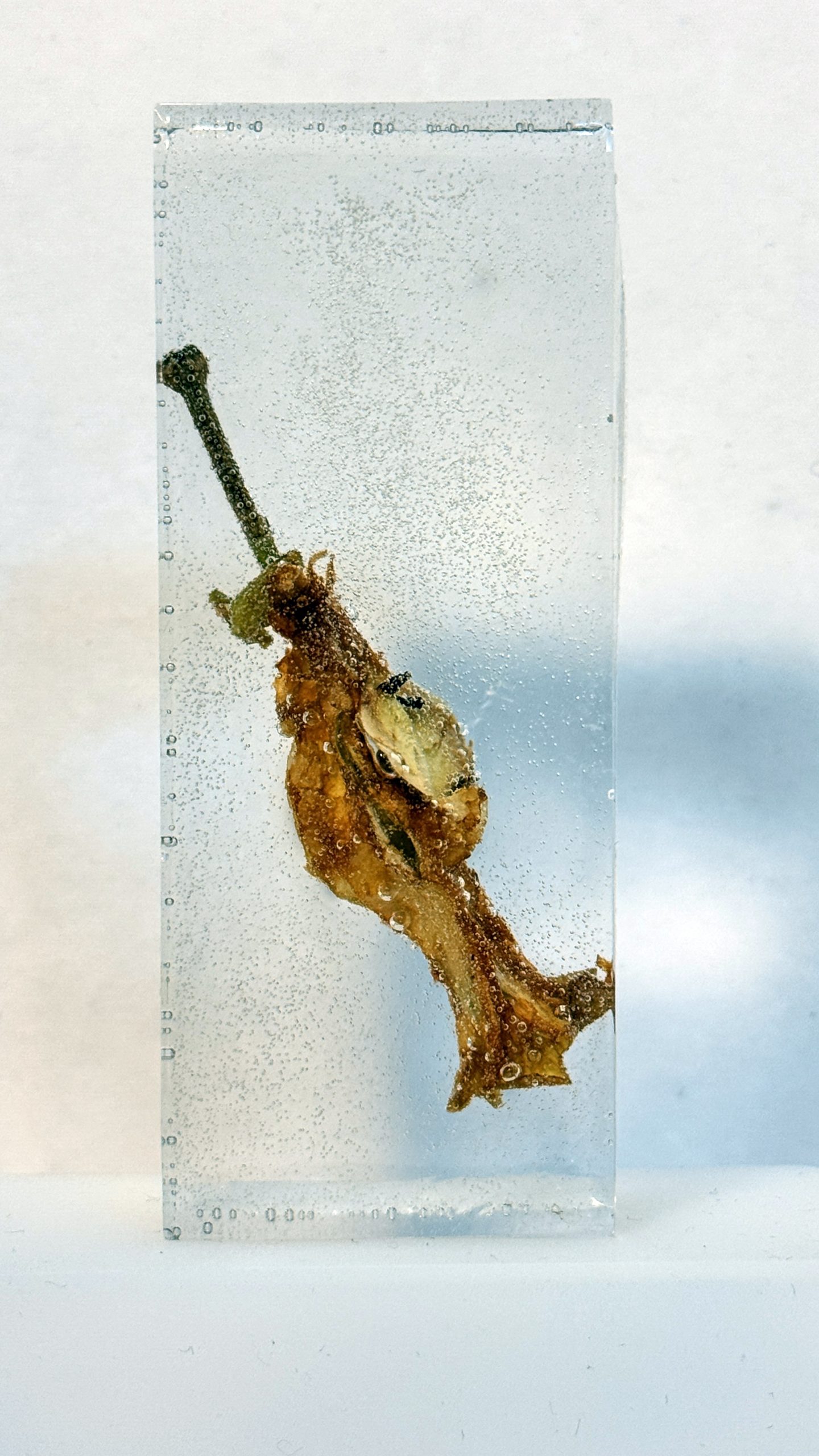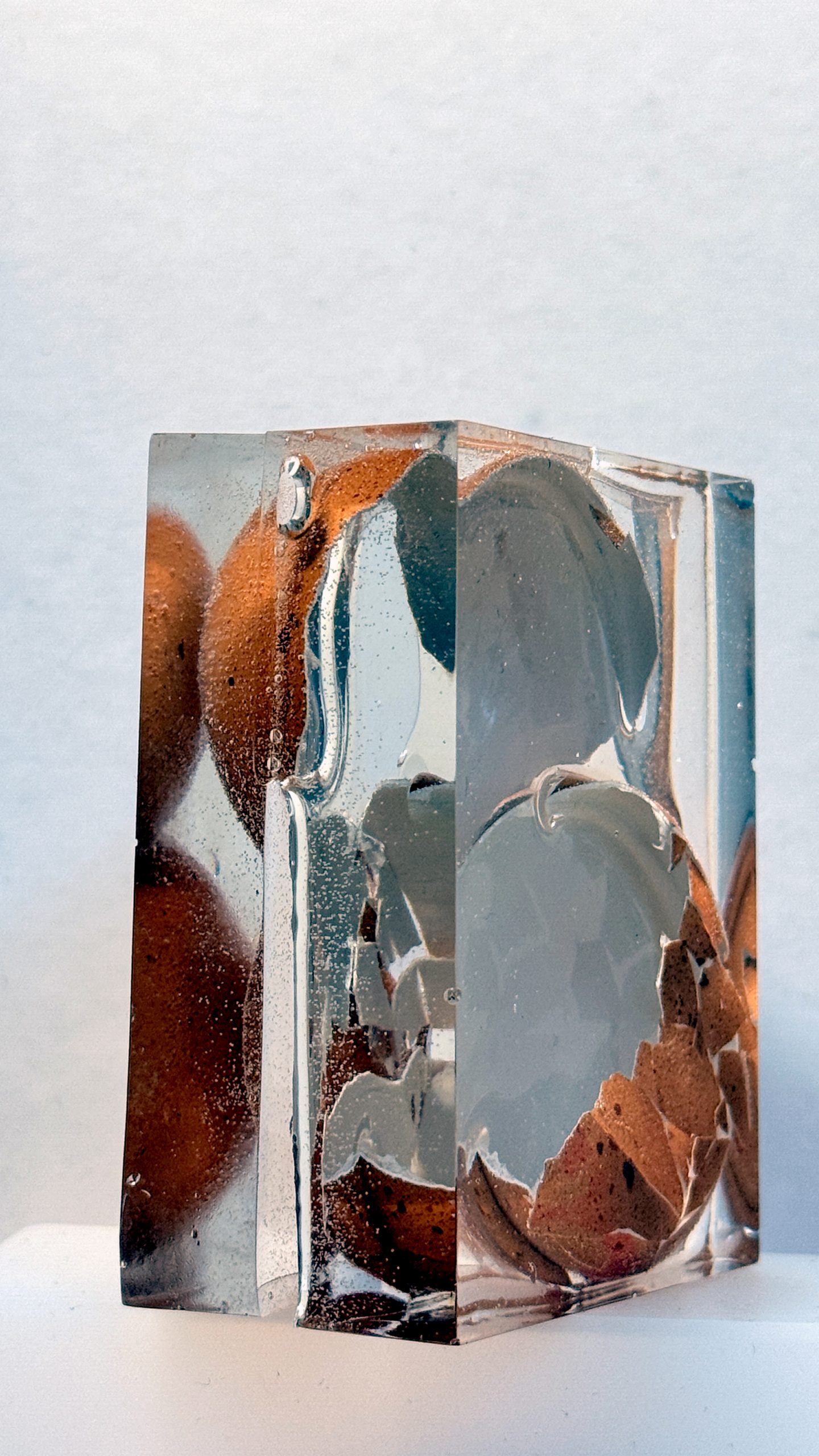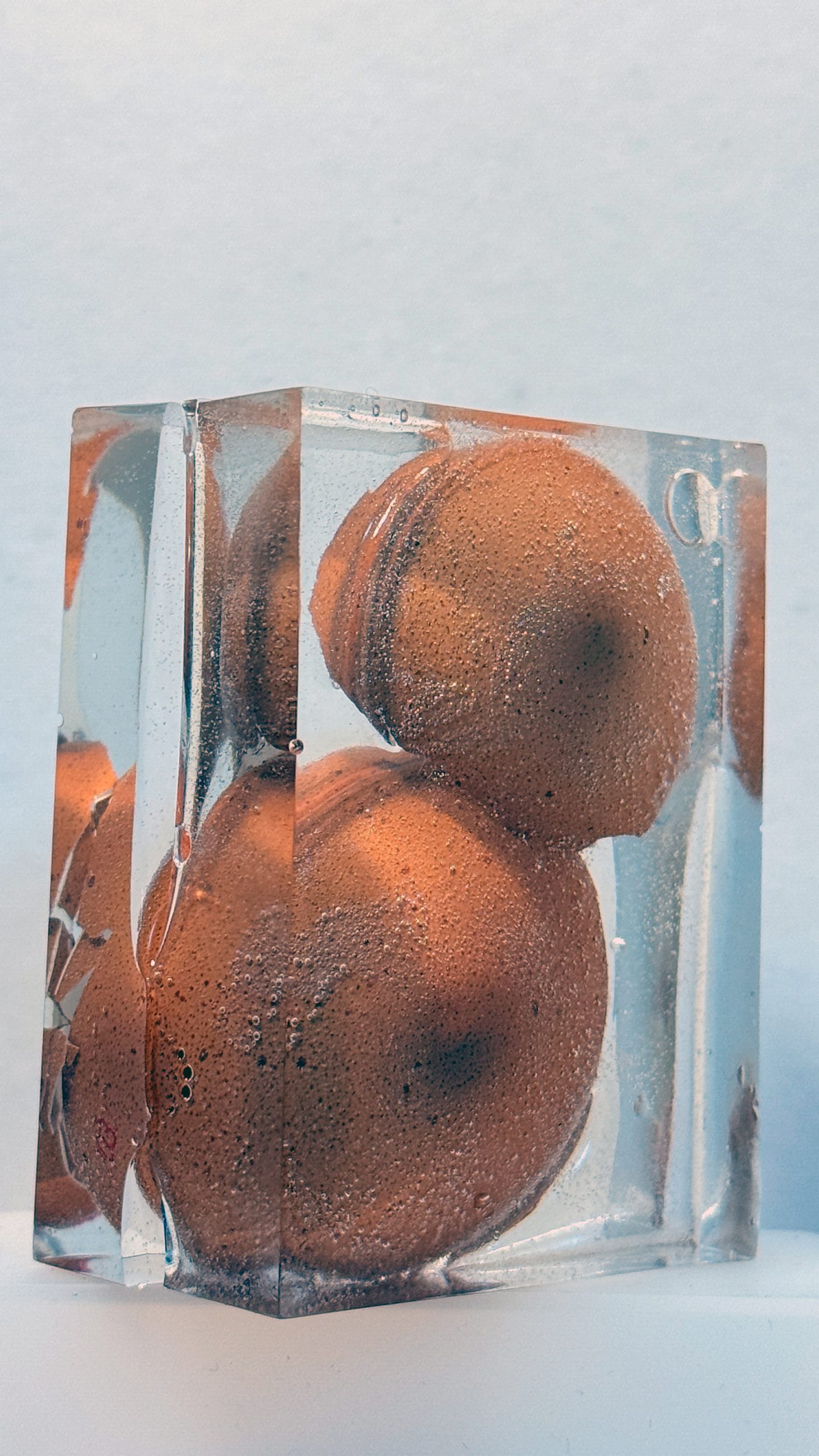 (Rotting apple core and clear resin: 9.8cm x 4cm x 2cm)