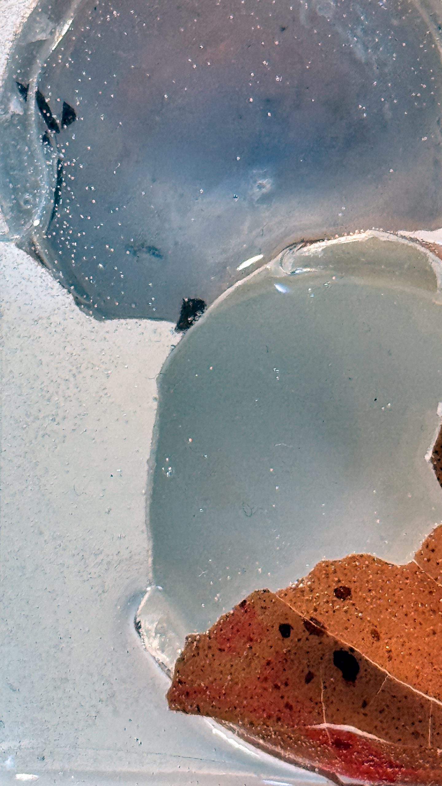 These following resin pieces work on two levels. Initially, my intent was to create pieces to memorialise the small moments of my daily life, the overlooked, the mundane, building on the conceptual direction I explored in UPM 1. But as the visual forms took shape in my mind (and they did so very quickly, without sketching: each is in effect a sketch and a finished piece), I saw the opportunity to create narrative memorials about specific world events/ situations that I hold an opinion on. The narrative for each is discussed briefly below.