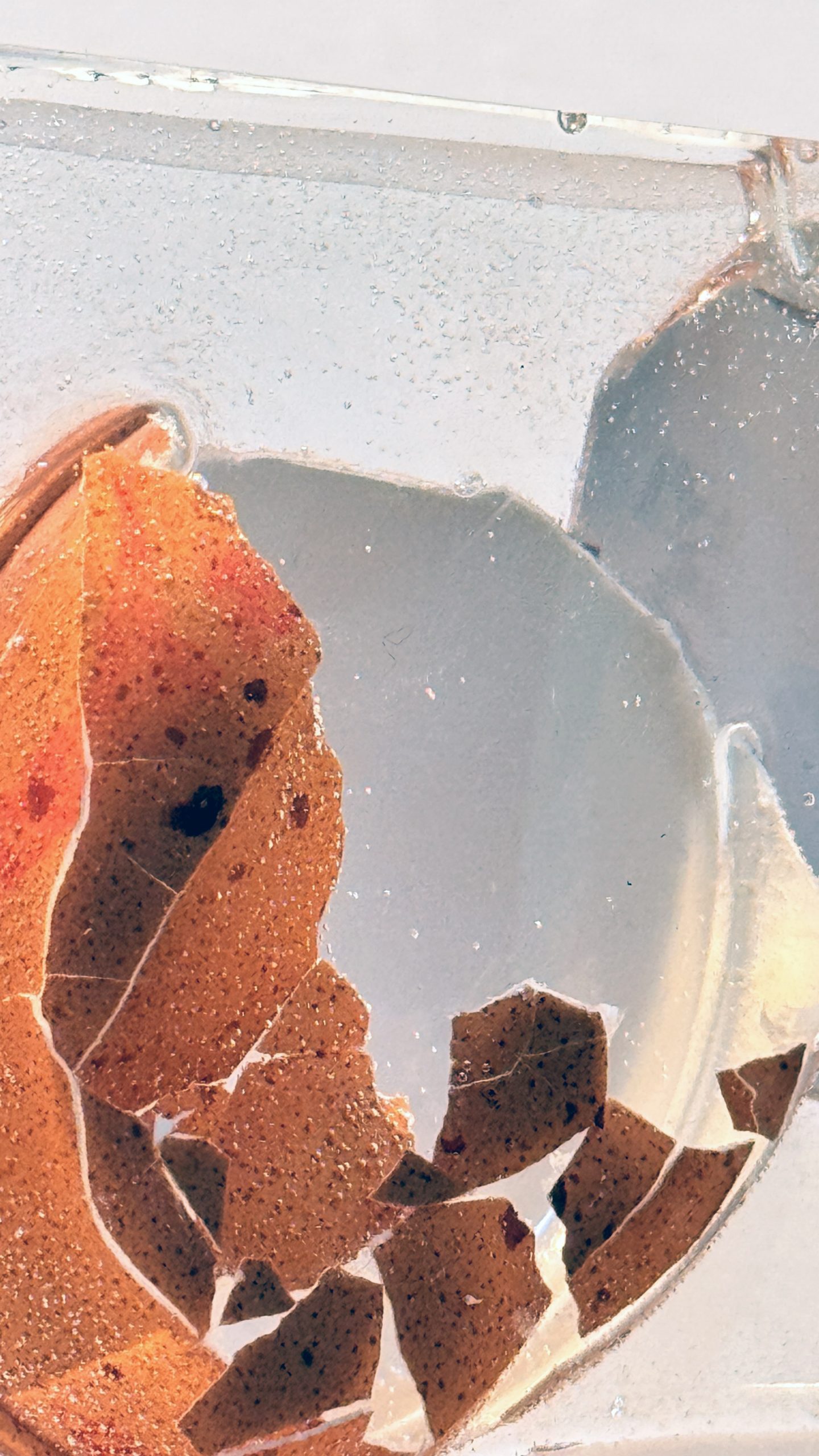 (Egg shell and clear resin: 6cm x 8cm x 3.4cm)