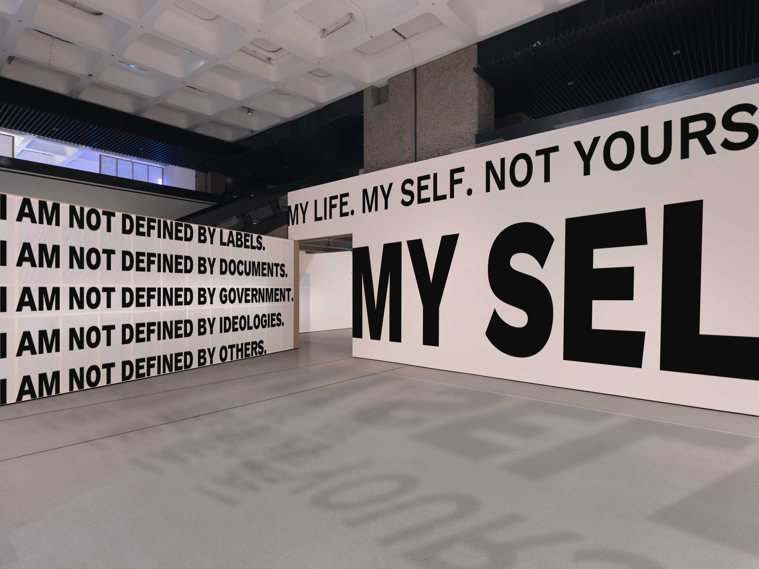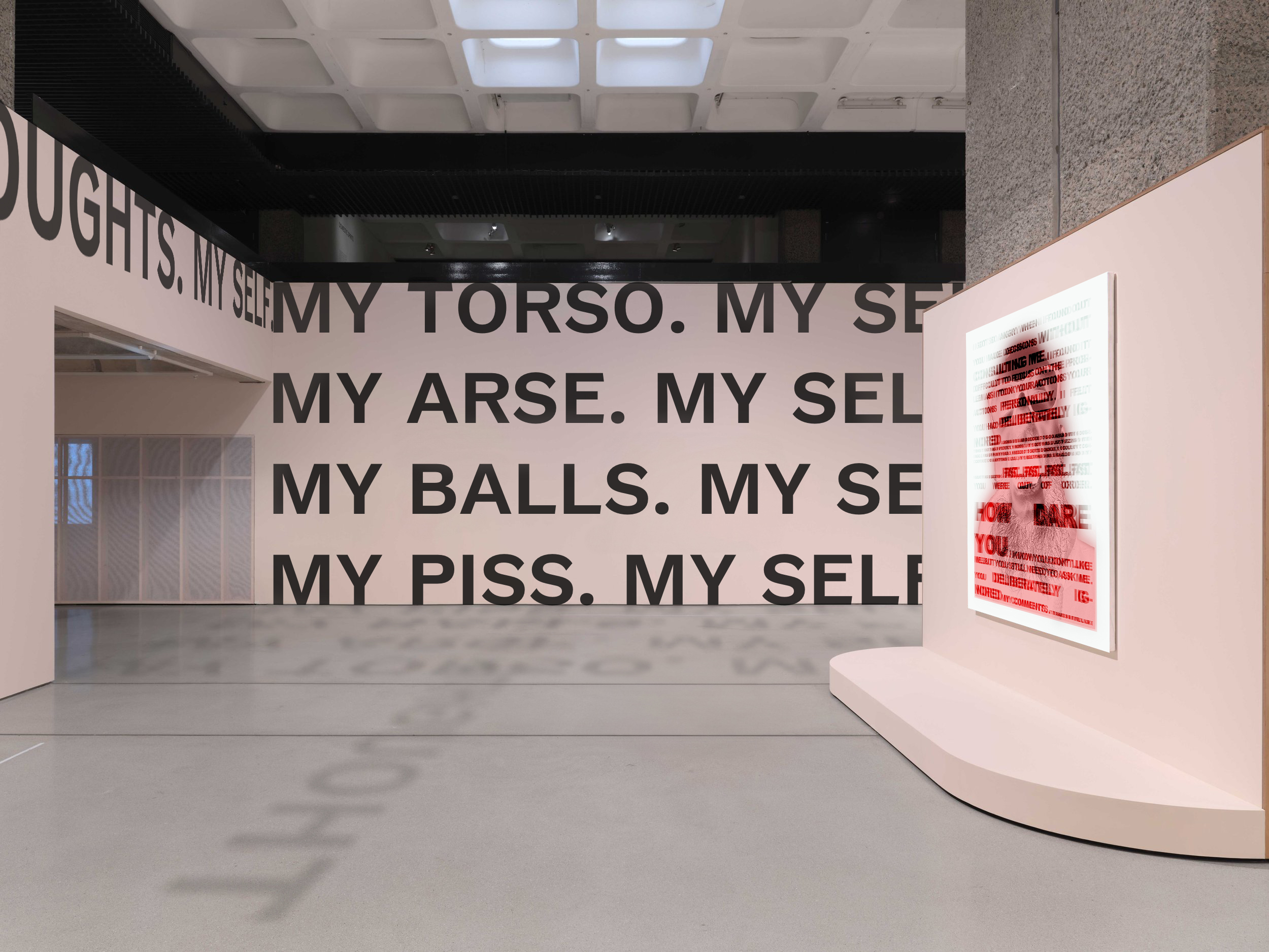 At suggestion of my tutor, to begin to get a sense of this work installed in a space and how it affects the intersubjectivity between work and viewer, I have created a series of Photoshop mockups. Using images of Noah Davis exhibition hang obtained from the exhibition designers website (https://www.freehausdesign.com/noah-davis-at-the-barbican), I have explored altering the scale of the work and installing aspects of the copy onto the walls. These only a first pass, based on these first iterations of the copy, but they do accentuate, powerfully, the message carried. More experimentation is needed with the aesthetics of the copy – quiet-loud, fast-slow, angry-sad-happy-resentful – and then a re-install based on those experiments. That will all follow at some point.