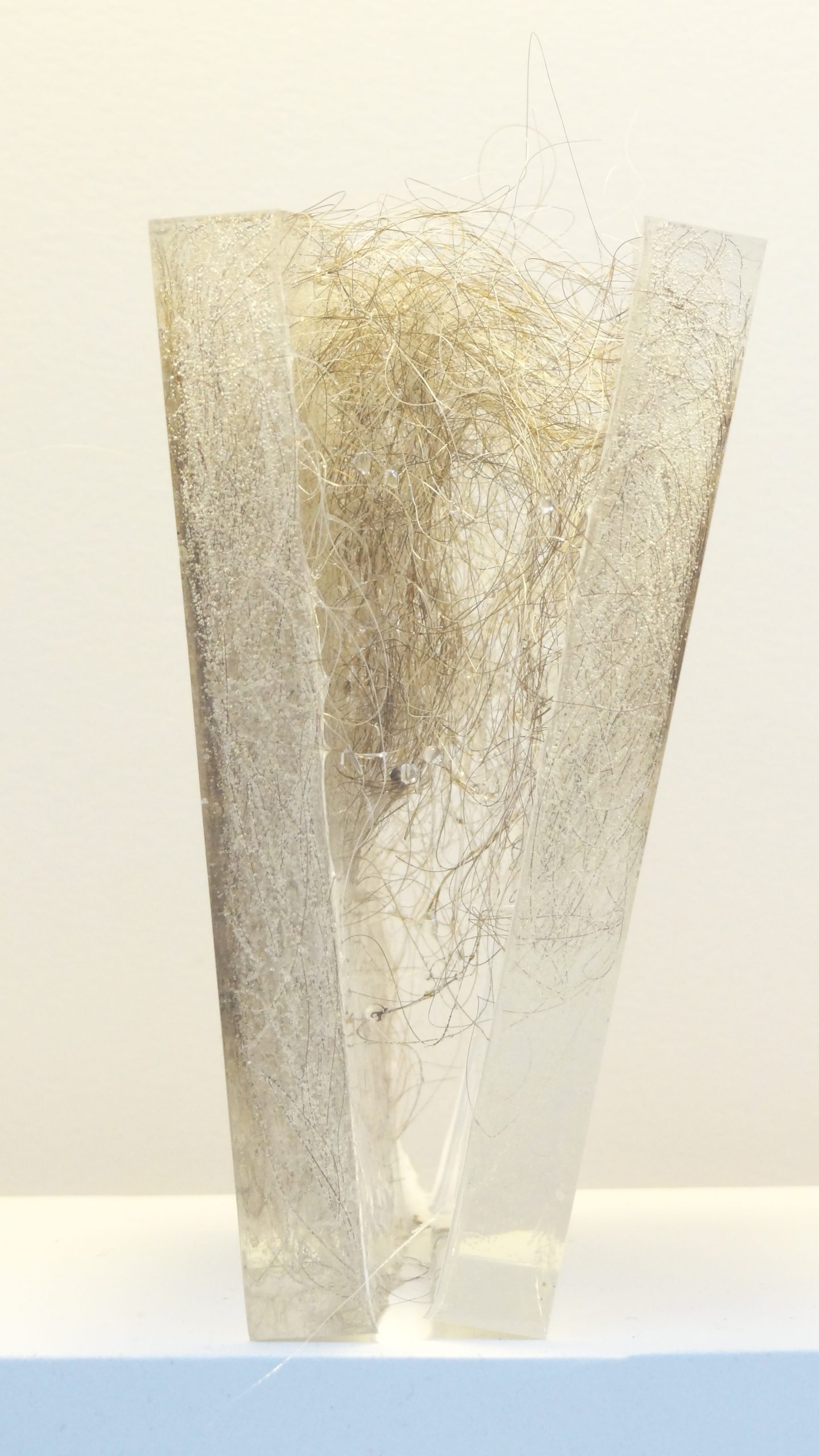 (Human hair and clear resin: 5 x 10 x 6cm)