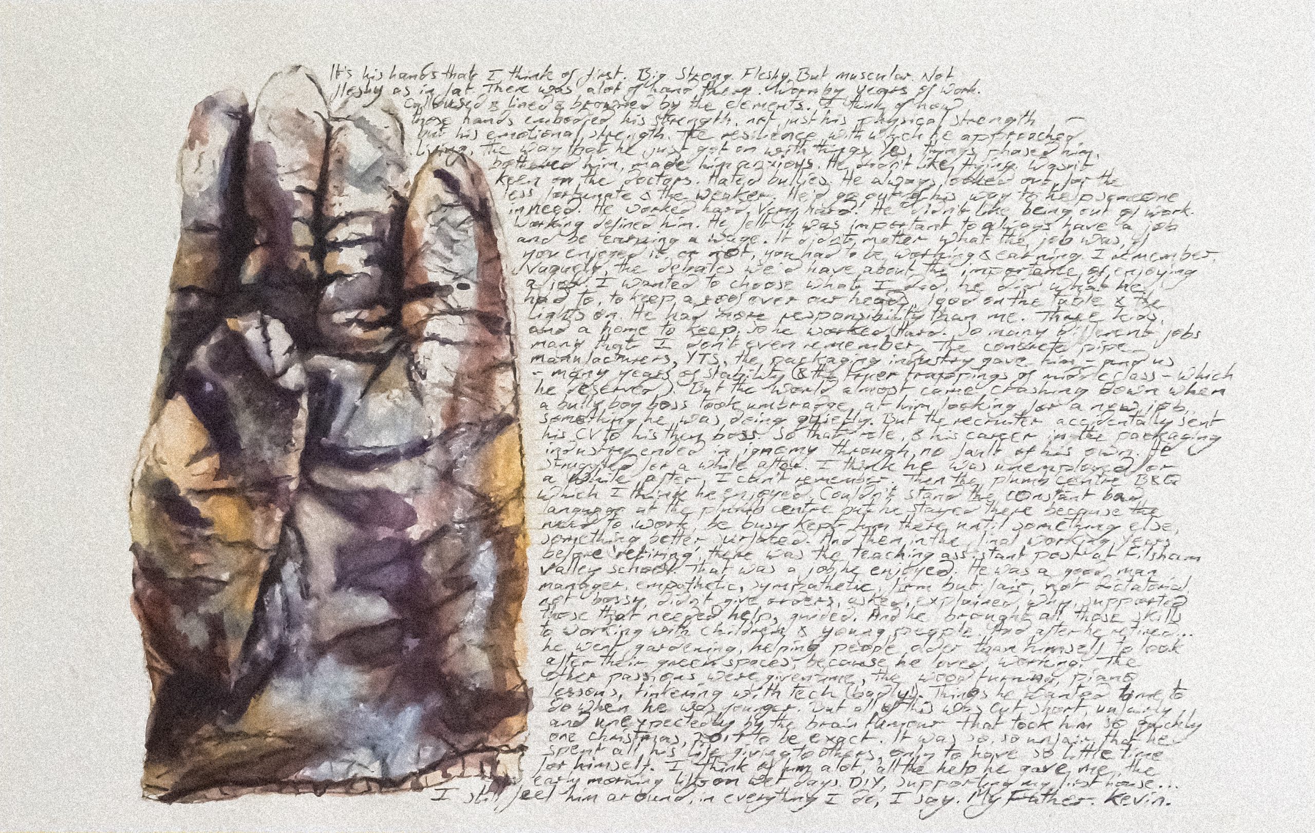 I have realised that in objects I find memories, remembrances of people and past events, and that I can create memorials to these by combining a representation of the object with a written narrative. It is important though that the narrative is more than just a record of facts, but a story driven by my emotions and perceptions. So, here, is the beginning of a record of how I remember my Dad, what I know about him, some of my feelings about and for him. It is just the beginning – I can be braver with the narrative, but that will come as I detach myself from concerns with the audience’s reaction.