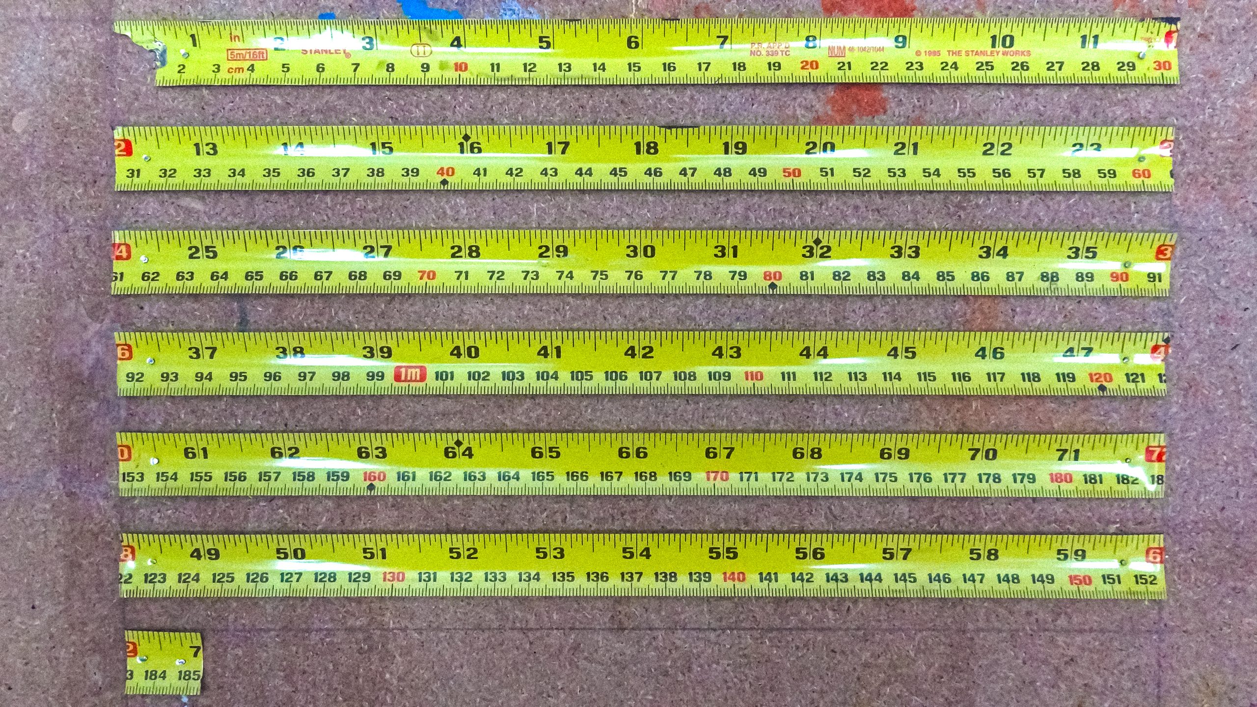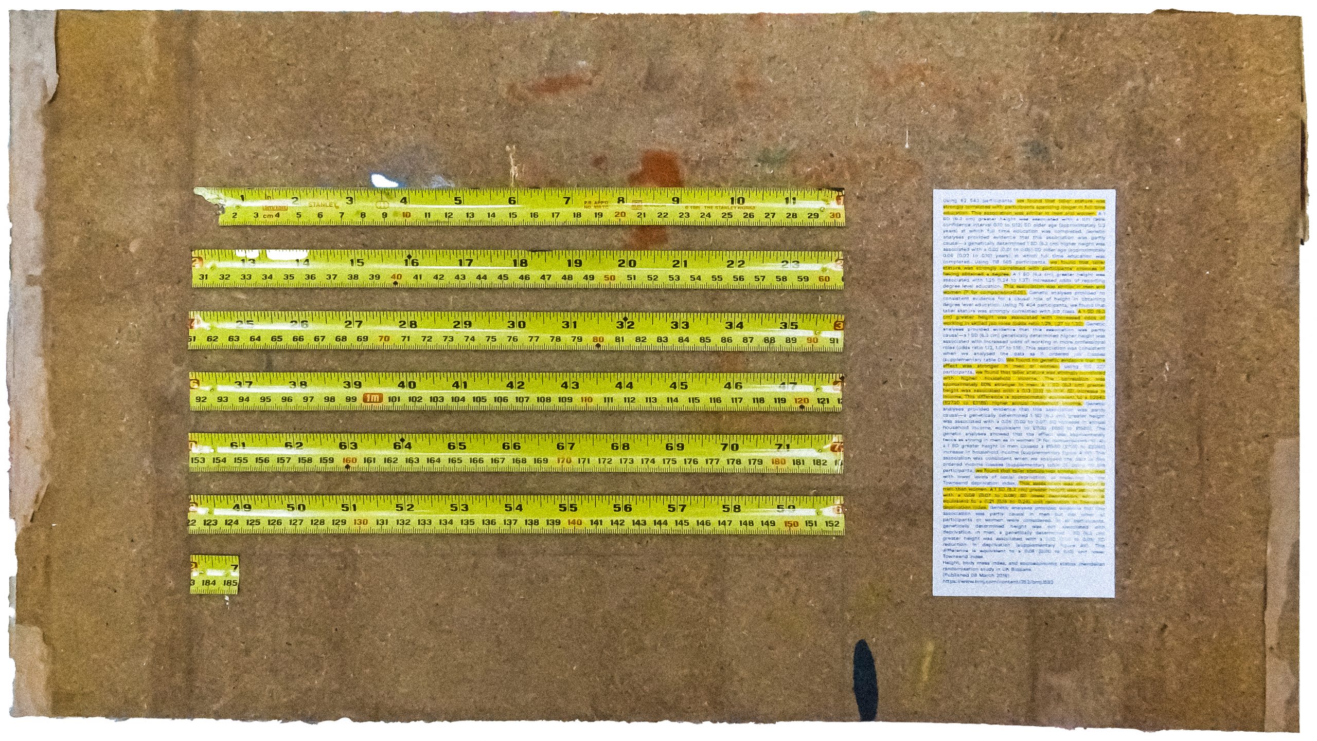 (Tapemeasure, data printout and school desk: 60 x 34.5cm)
